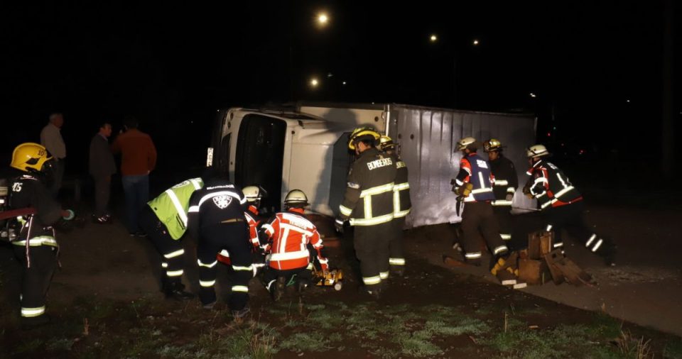 Un accidente de tránsito movilizó a equipos de emergencia durante las últimas horas en la comuna de Temuco, luego de que un camión de tres cuartos que transportaba carne protagonizara un volcamiento en un sector urbano.